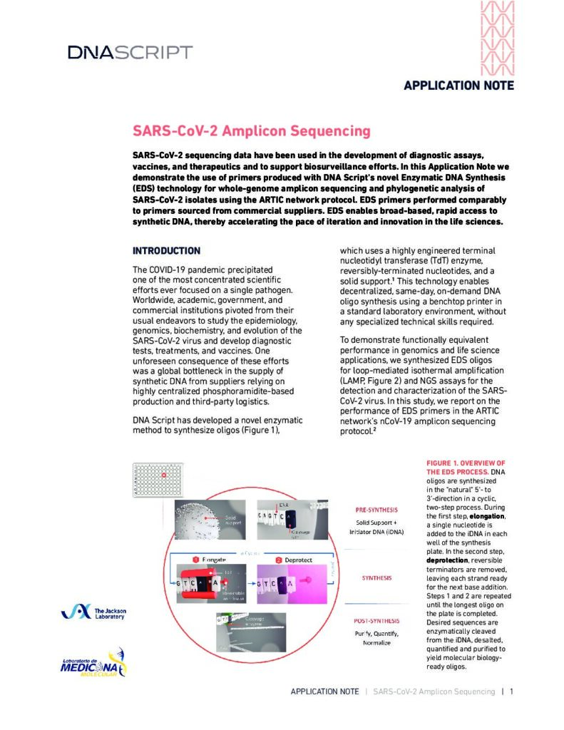 Discover the benefits of using primers synthesized by the SYNTAX System, a benchtop DNA printer powered by Enzymatic DNA Synthesis technology for whole-genome amplicon sequencing and phylogenetic analysis of SARS-CoV-2 isolates.